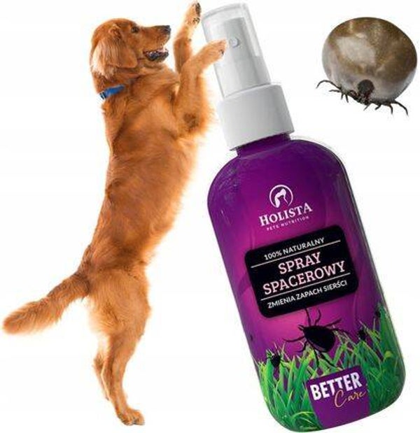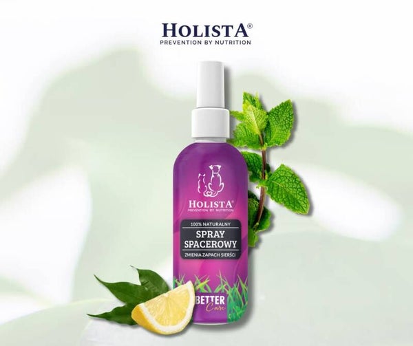 Natural Holista Walking Spray is an effective and completely safe protection for your dog during daily walks. A carefully composed blend of certified essential oils creates a natural scent barrier that deters ticks, fleas, and mosquitoes, while leaving a pleasant aroma on the coat. 100% natural alternative to chemical protection products.