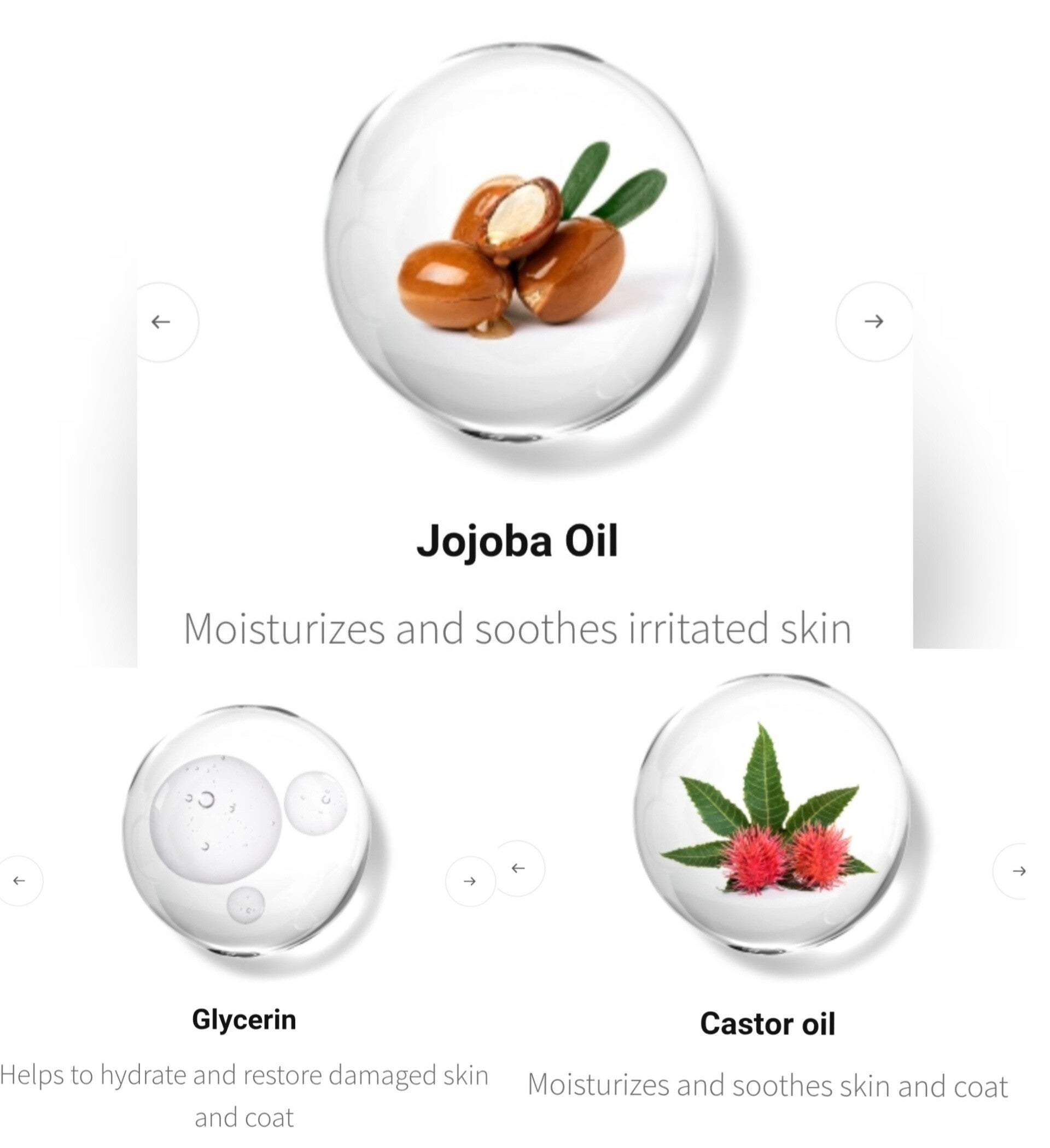 The nourishing ingredients contained in the product help restore water balance in both the pet's fur and skin. Proper water balance in the skin helps to preserve its elasticity, and the necessary water balance in the fur helps to keep it healthy and shiny.