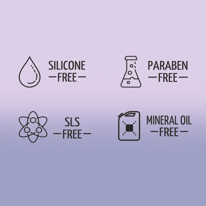 - Free of SLS, parabens, mineral oils and silicones.