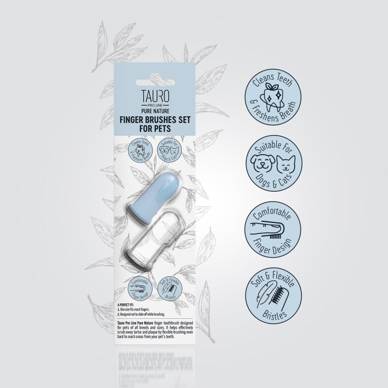 Tauro Pro Line Pure Nature finger brushes are the ideal choice for introducing your pet to oral and dental hygiene. It can gently remove any food residue stuck between the teeth, so your pet won't feel stressed when they are first introduced to the toothbrush and the new routine of brushing their teeth. The toothbrush-thimble brush features soft bristles made of health-friendly silicone, ensuring the gums remain undamaged while gently and effectively removing accumulated dirt.