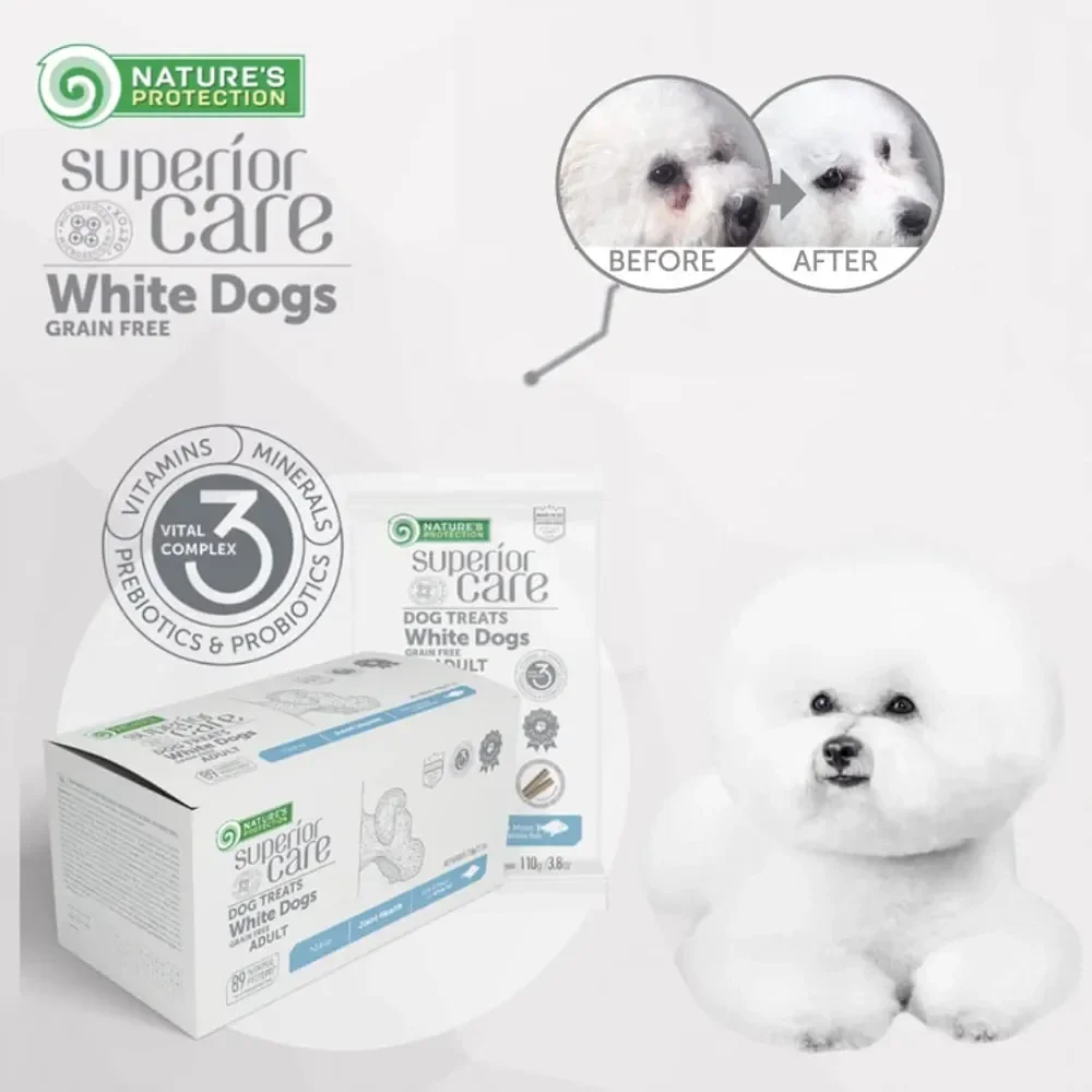 Nature’s Protection Superior Care White Dogs Grain Free Healthy Hips & Joints supplemental snacks perfect for pet’s overall well-being and hip joint support. The main source of protein in supplemental snacks is white fish meal. It is a good source of protein and provides essential amino acids, which are the building blocks of protein. It is also a rich source of omega-3 fatty acids, which are important for maintaining healthy skin and coat, promoting joint health, and supporting the immune system. White fish is also a low-fat protein source, making it a good option for pets that require a low-fat diet. These functional snacks – supplements have a wetter and softer texture than the usual treats. Wetter products reveal a more natural aroma, making them a favourite for even the pickiest pets. Supplemental snacks are enriched with clinoptilolite of volcanic origin from nature – MicroZeoGen. It helps to remove toxins from the pet’s body and when it is detoxified the efficient nutrients, vitamins, and minerals easily absorb into the body. The composition contains glucosamine and chondroitinthat may help to keep a pet’s joints healthy and flexible. It is an ideal tool to ensure the efficiency and effectiveness of the pet’s movement system. The supplemental snacks do not contain ingredients of grain origin, corn or soy products that can cause allergic reactions.