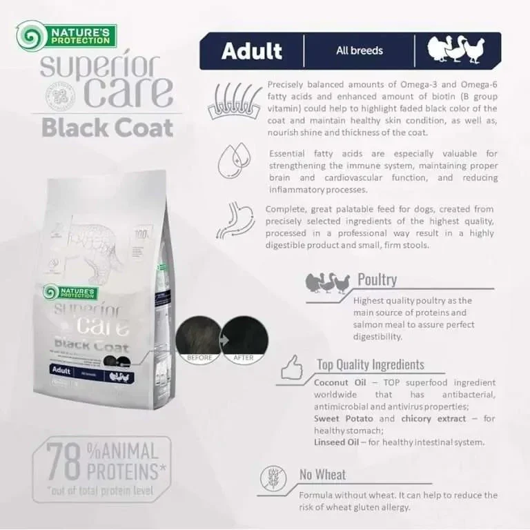 Protection – Superior Care Black Coat Dry Dog Food Poultry For Adult All Breeds