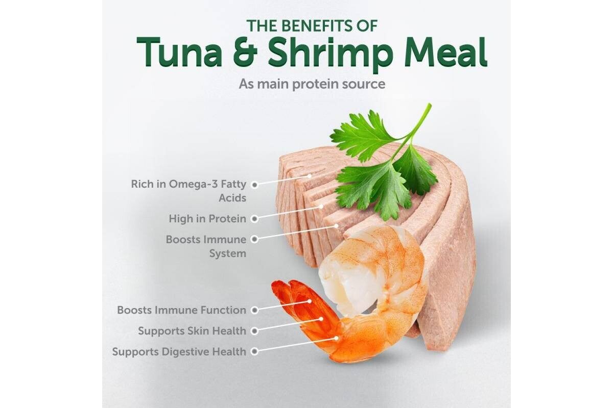 With Shrimp – Provides essential minerals like zinc and phosphorus, crucial for immune function and strong bones.